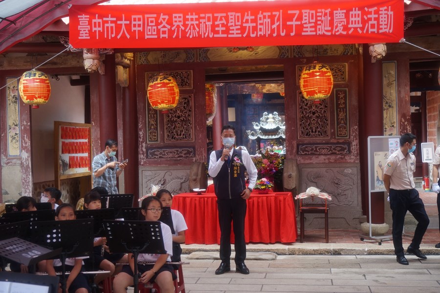 大甲區公所顏金源區長擔任主祭官,與議員、里長、學校師生們進行祭祀儀式