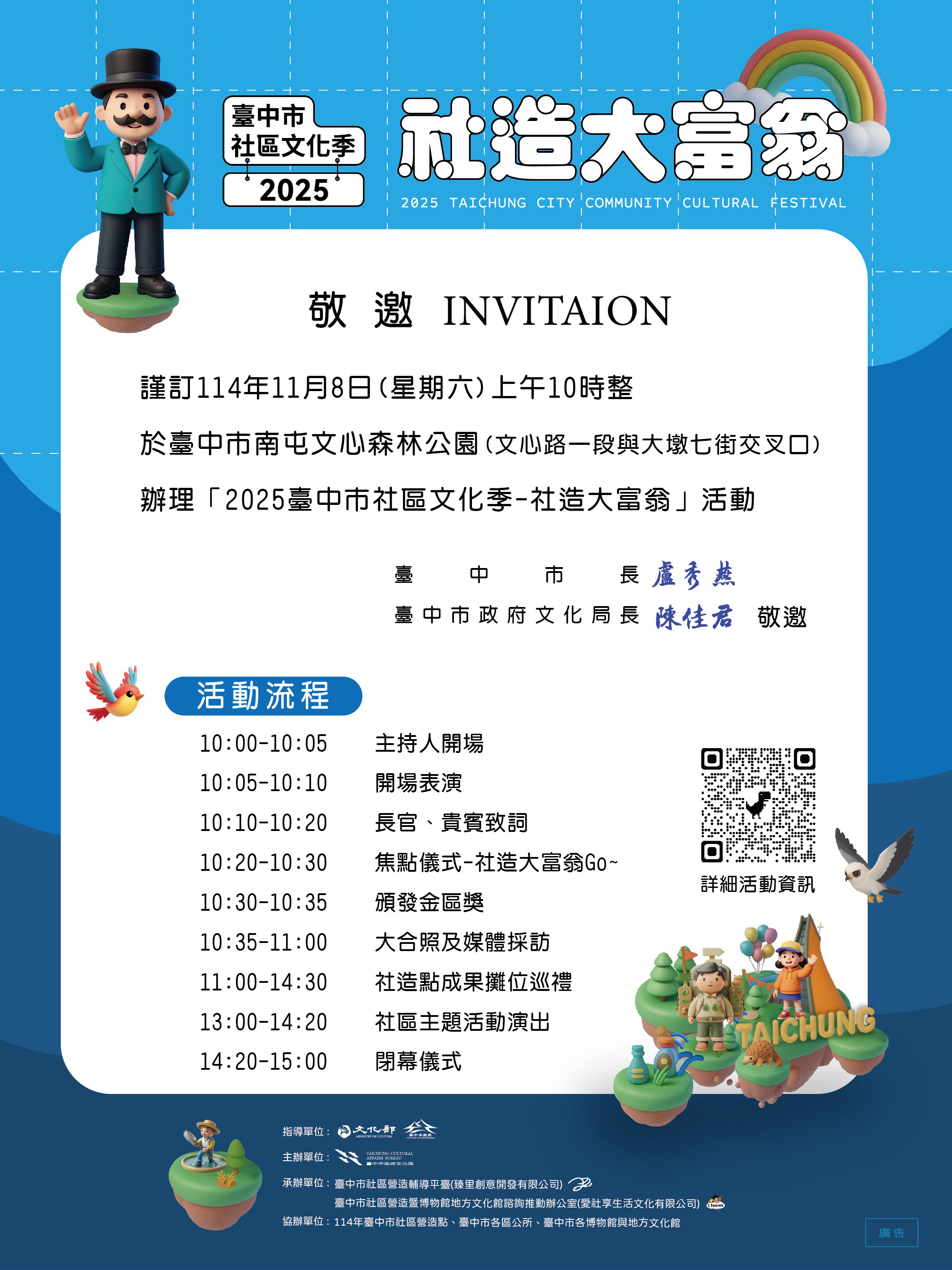 協辦單位:114年臺中市社區營造點 、臺中市各區公所 、臺中市各博物館與地方文化館