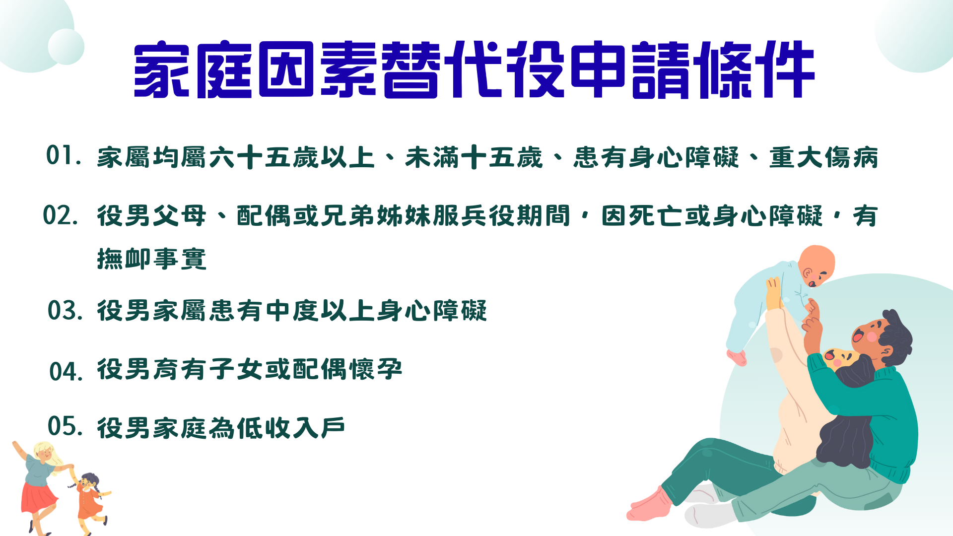 3.役男家屬患有中度以上身心障礙。