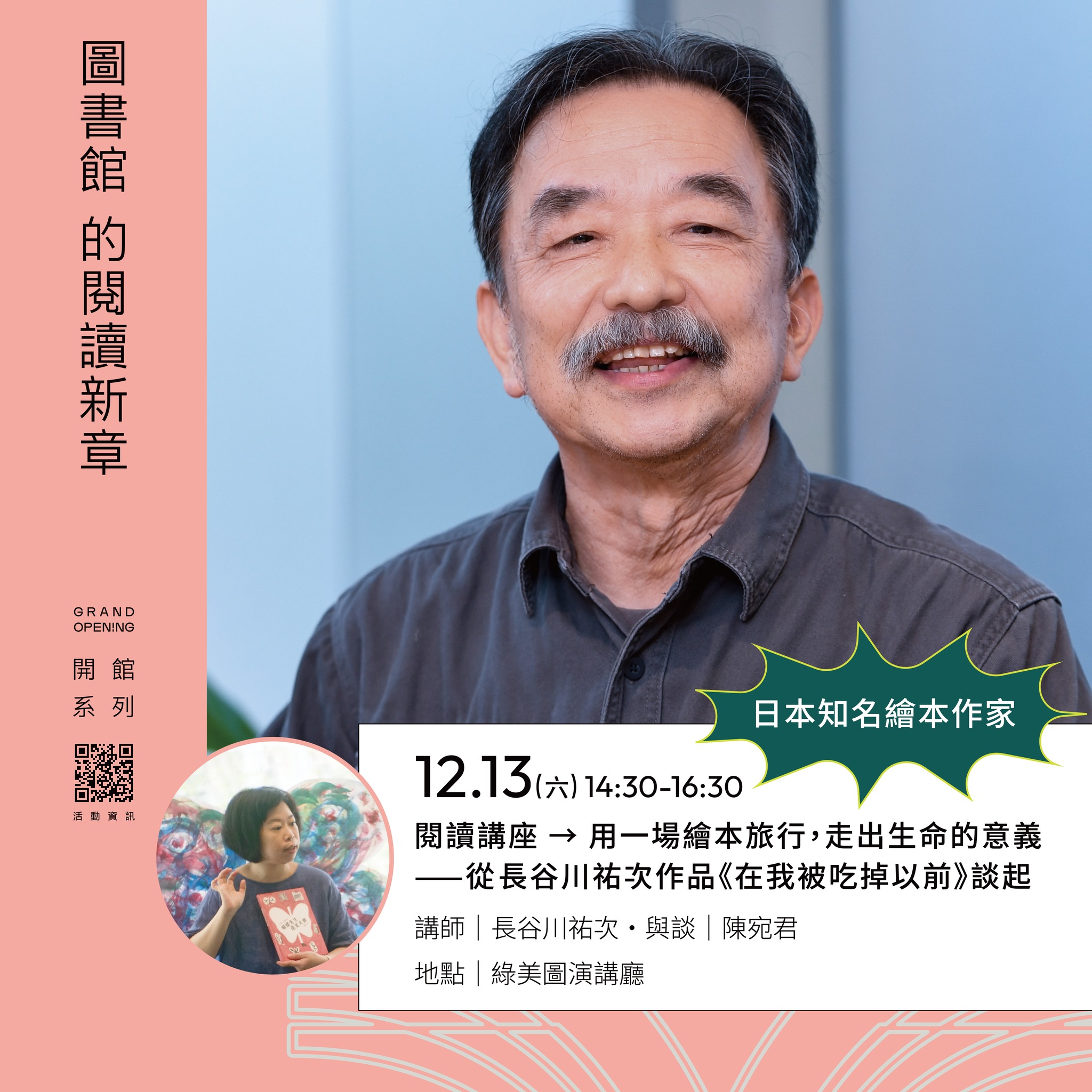 四、活動內容:精心規劃三場國際講座,邀請日本與韓國三位重量級講者——繪本作家長谷川祐次、日本首位「選書師」幅允孝,以及韓國科幻文學新星金草葉——於開館期間接力登場。三位講者將以跨文化視角,分別就生命、閱讀與未來等主題進行分享,期望為市民開啟一場深度且充滿想像力的閱讀饗宴。