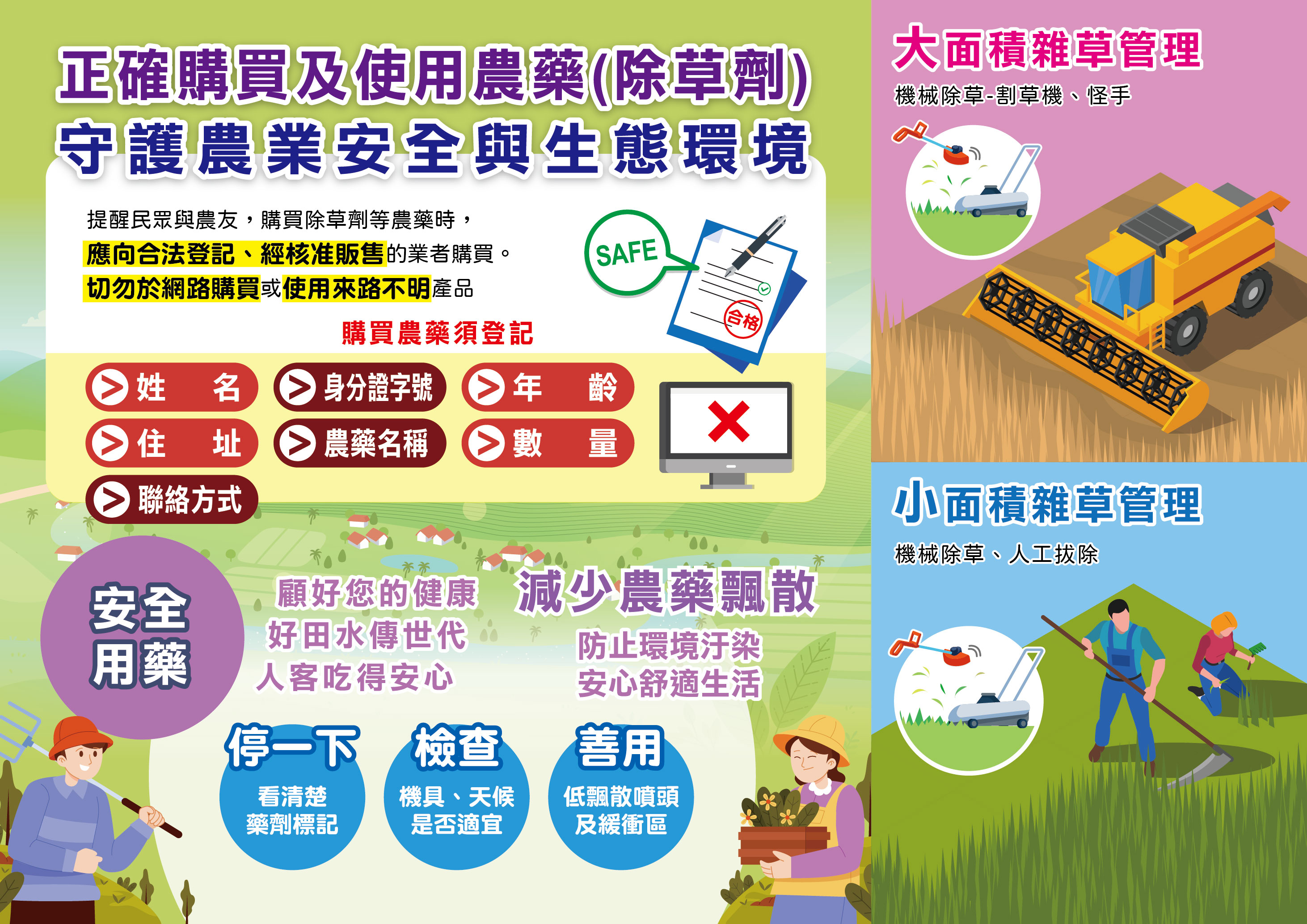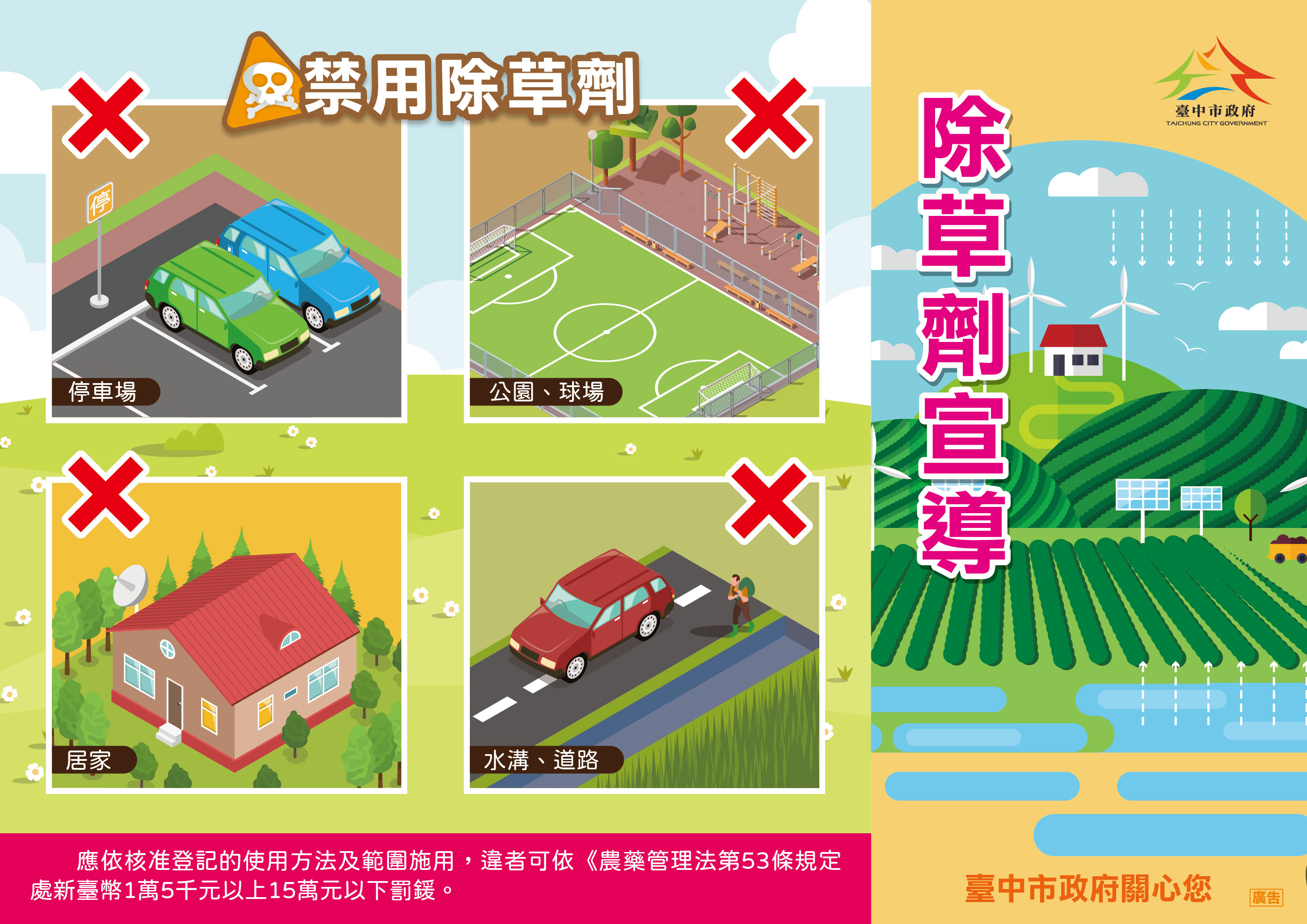 臺中市政府農業局製作除草劑宣導摺頁,宣導市民雜草防除正確觀念。