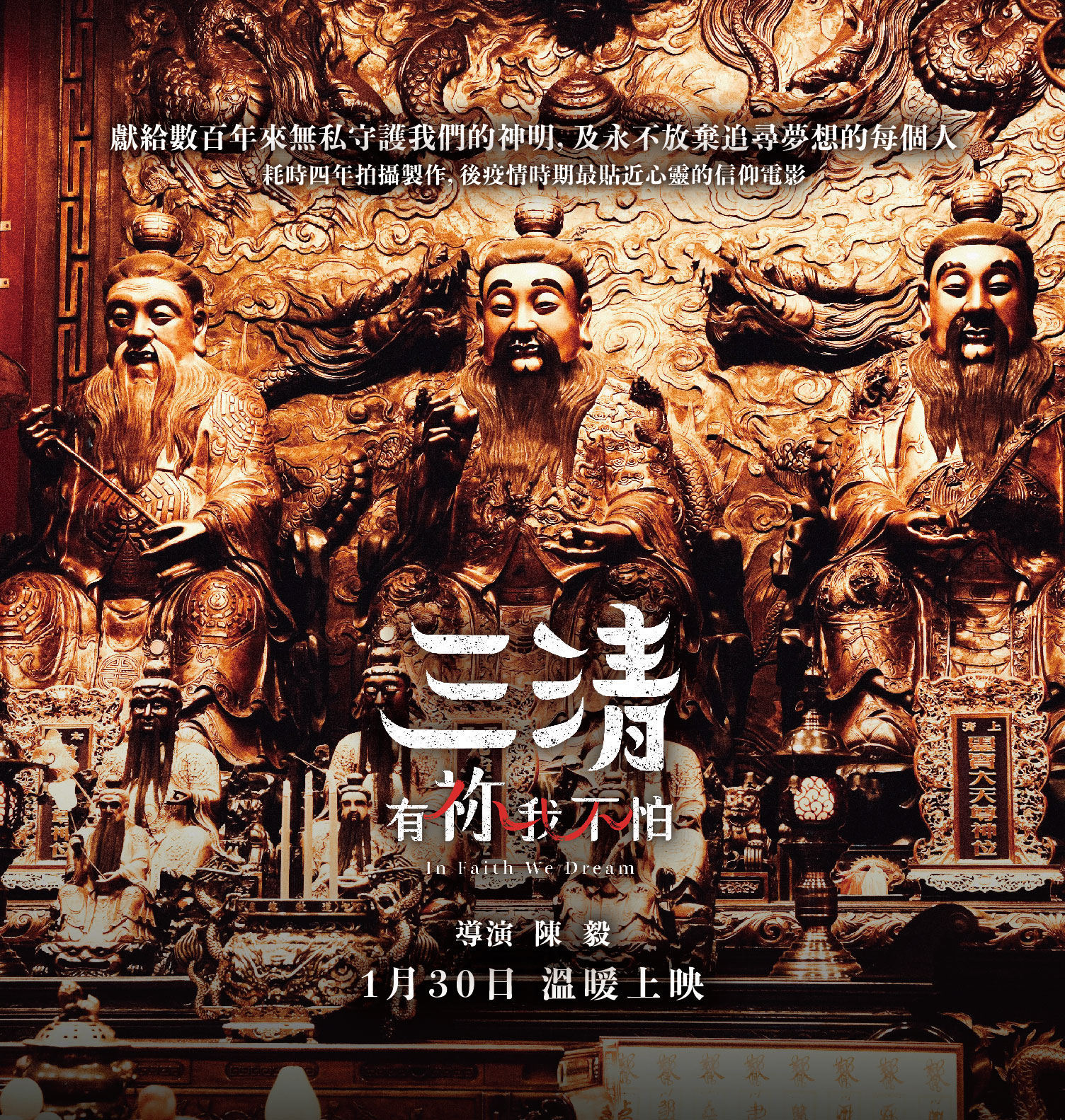 三清722x760 一位原本抗拒拿香拜拜的導演,因拍攝電影踏上尋找答案的旅程。從童年與求學時期的質疑與困惑出發,走入紫南宮旁的蛋捲攤、員林東山媽祖青年團、桃園旗南宮等宮廟現場,以鏡頭記錄信仰如何一點一滴回應內心的提問。這是一部串聯神明與人心的紀錄長片,描繪在時代轉折中,人們如何穿越困境、追尋夢想,也是後疫情時代最貼近心靈的電影。