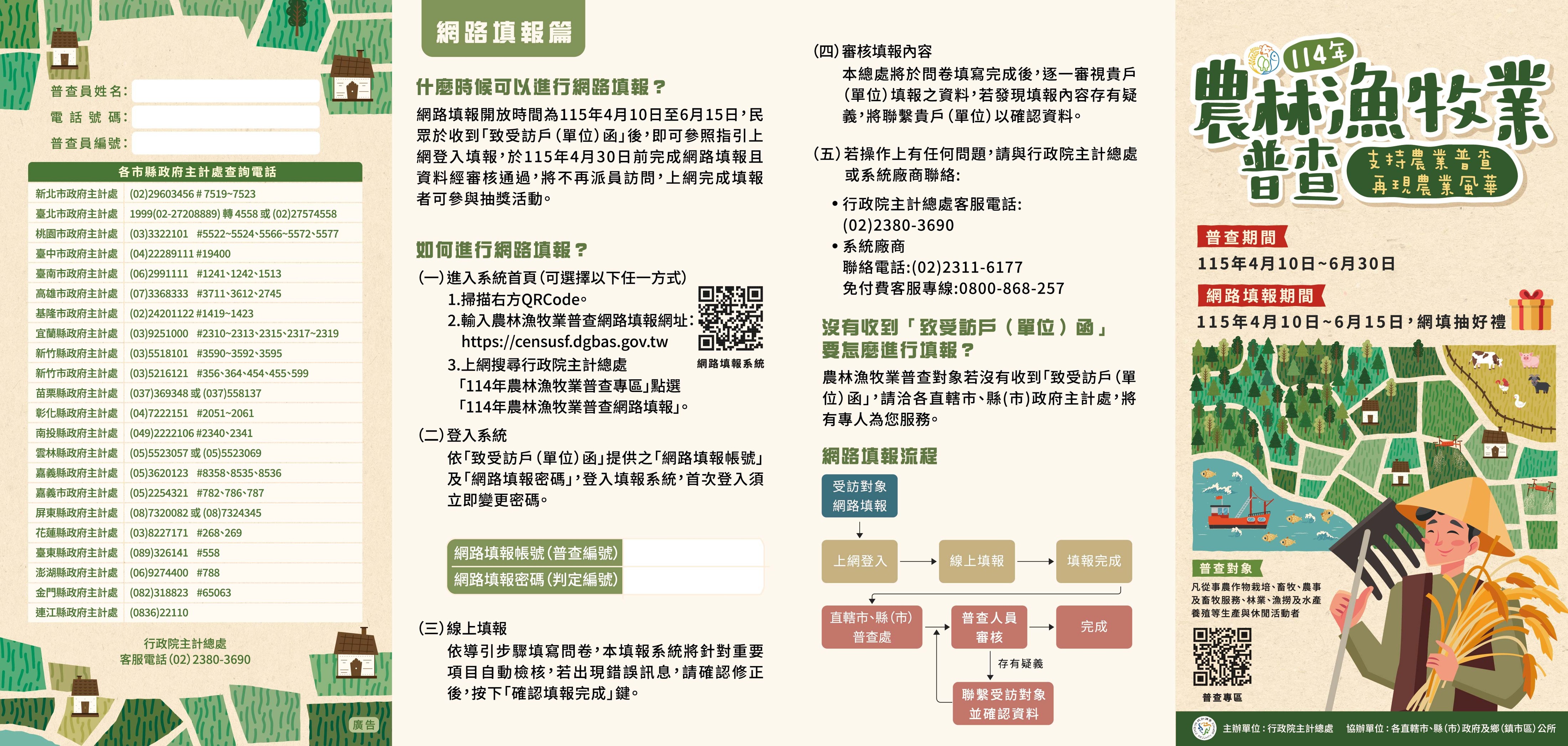 行政院主計總處於115年4月10日至6月30日舉辦「114 年農
