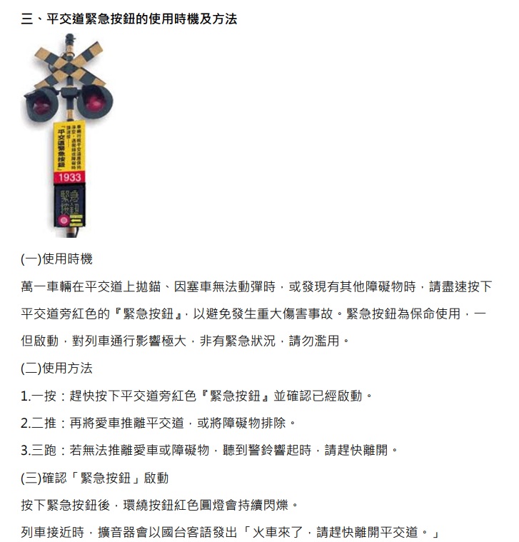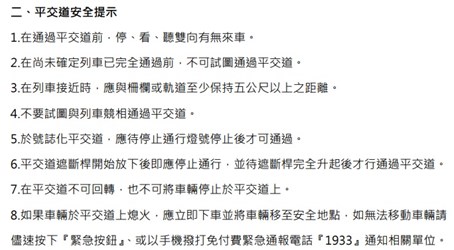 【轉知】國營臺灣鐵路股份有限公司中區營運處平交道宣導及防範措施