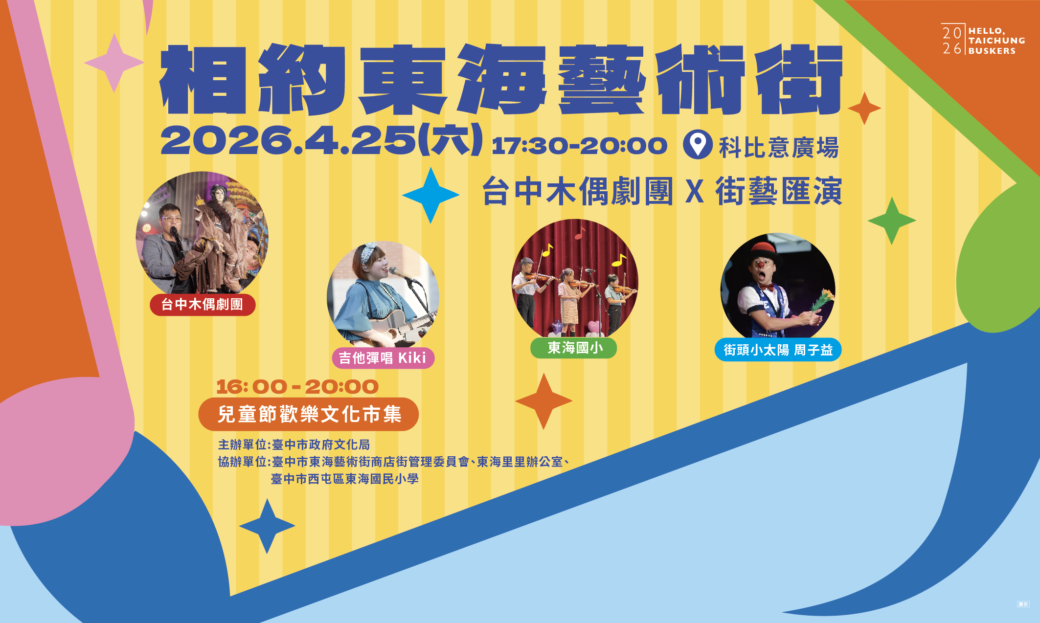 臺中市政府文化局辦理「相約東海藝術街:台中木偶劇團X街藝匯演」戶外演出活動,歡迎大眾踴躍參加