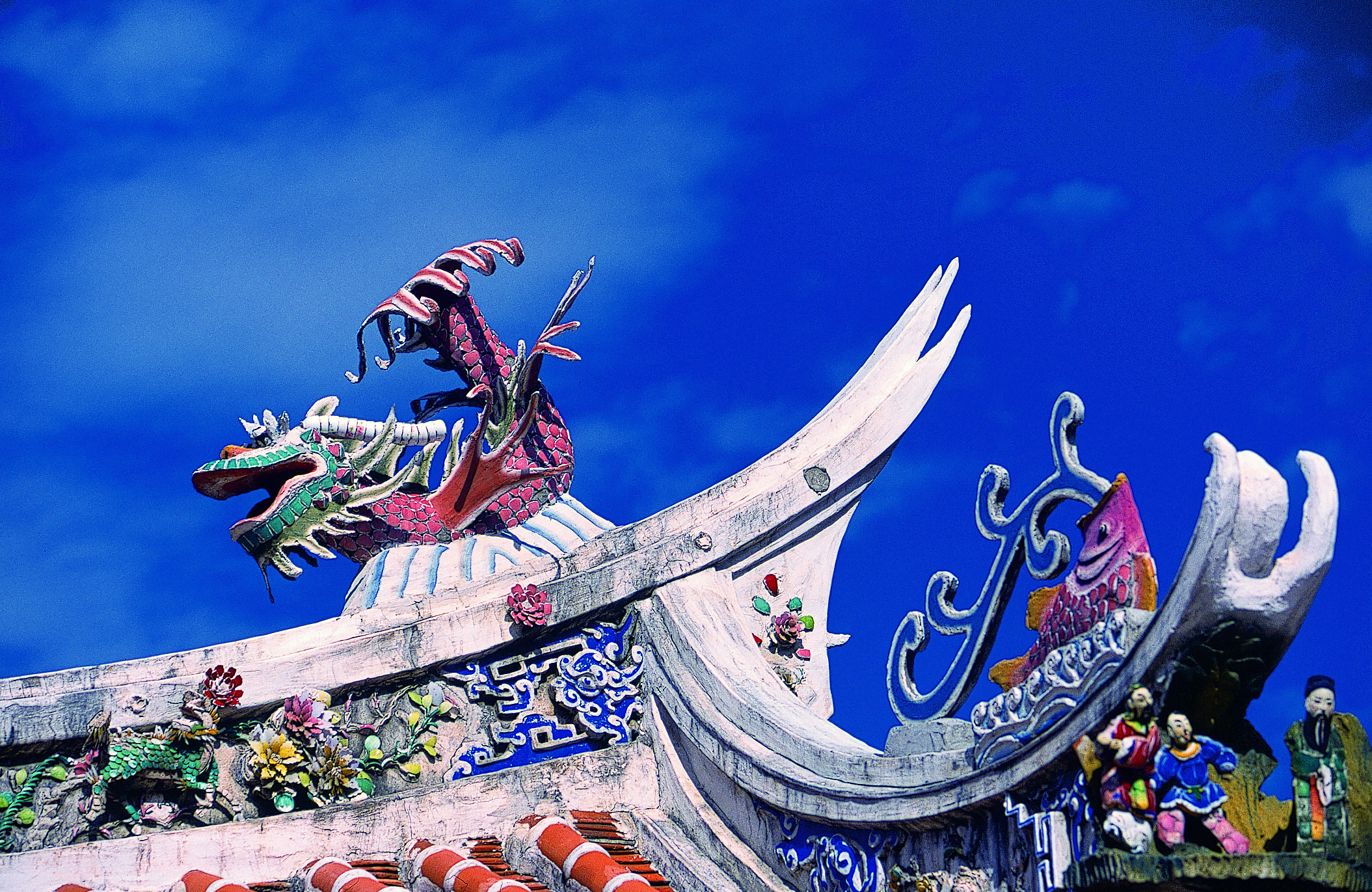 6、丹墀御路:拜殿與天井銜接處的正中央,有團龍造型的「丹墀御路」。龍頭似平坦階梯,為昔日家鄉子弟金榜題名時,走中門、入聖廟,踏丹墀的龍頭為階梯,謝神明的特有尊榮,稱「獨佔鰲頭」。此登聖殿謝神明,為地方重大盛事。