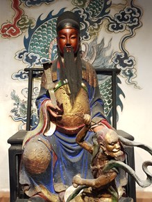 本名呂洞賓,名喦道號純陽子,河中府永樂縣人。自小聰明過人,過目成誦,出口成章。咸通3年(862)年進士及第,兩調縣令,值黃巢起兵,棄官離家,隱居終南山。遊華山遇道士,鍾離權授以金丹祕法,得道成仙。元代加封為「純陽演政警化孚佑帝君」。著有《九真玉書》1卷傳世。世人奉為八仙之一。